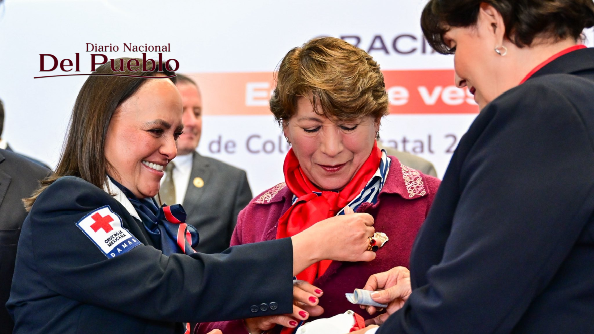 La gobernadora del Estado de México, Delfina Gómez, asistió al arranque de la Colecta Estatal 2026 y a la toma de protesta del Consejo Estatal de la Cruz Roja Mexicana, institución reconocida por su labor en auxilio y atención médica a la población.