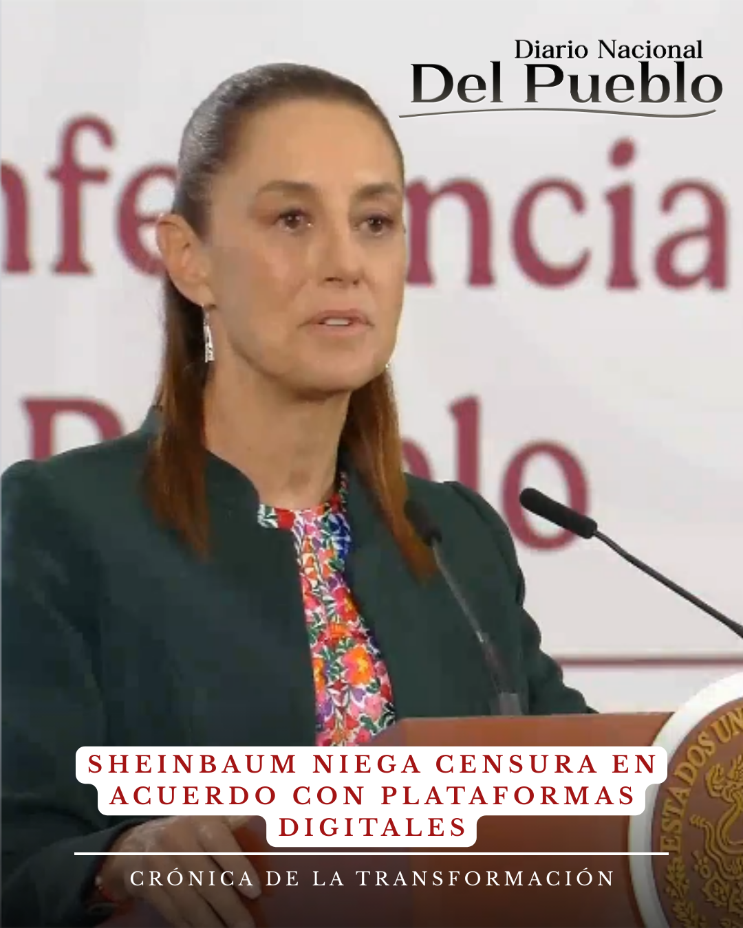 Durante su posicionamiento, la mandataria calificó como falsas las versiones que señalan que el convenio podría limitar la libertad de expresión en redes sociales.